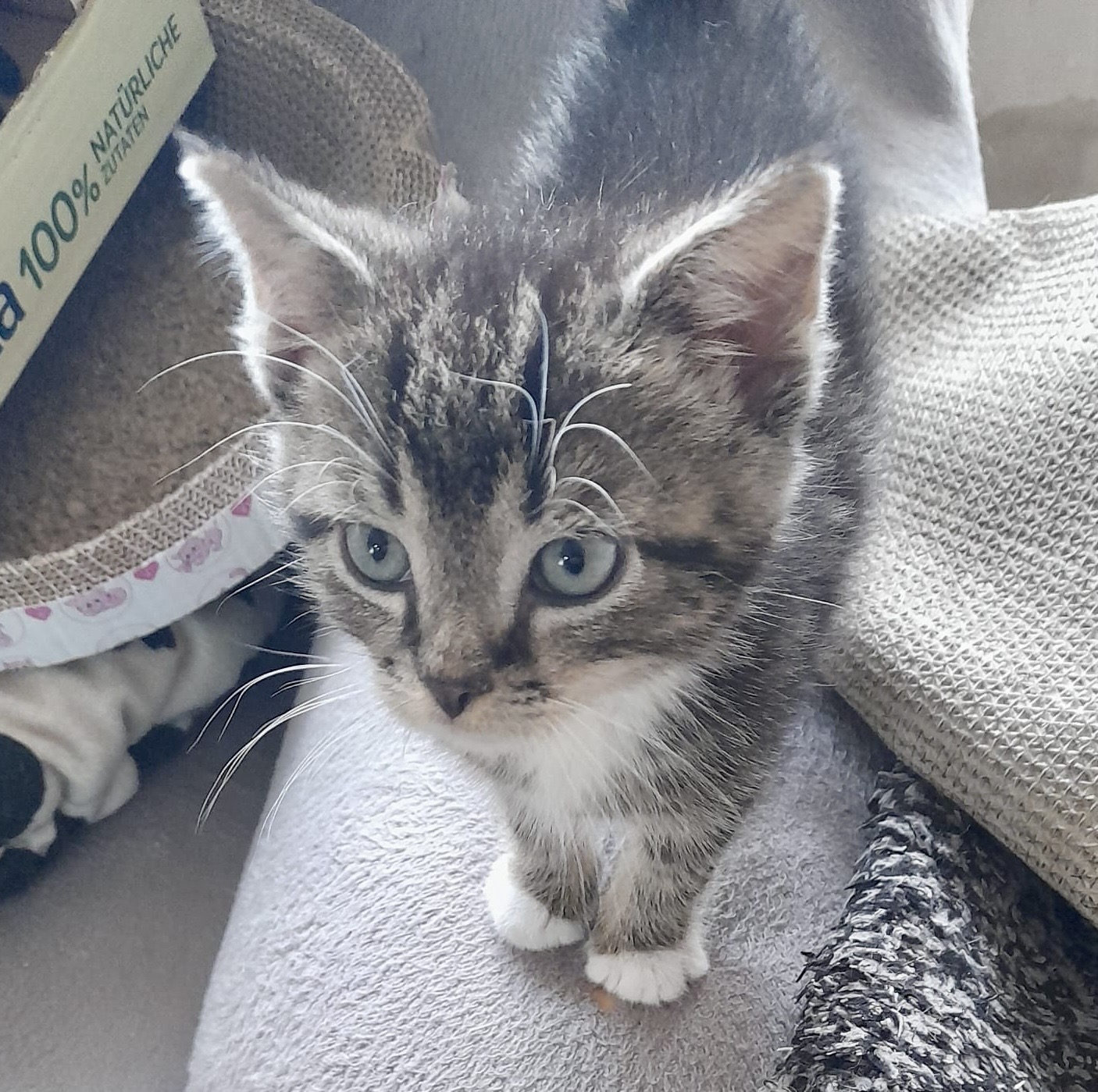 Paulinchen, sie nimmt Lekkerlie aus der Hand, aber anfassen ist noch nicht. Deshalb ist sie noch nicht geimpft, gechipt oder kastriert. Es wird also Geduld benötigt.